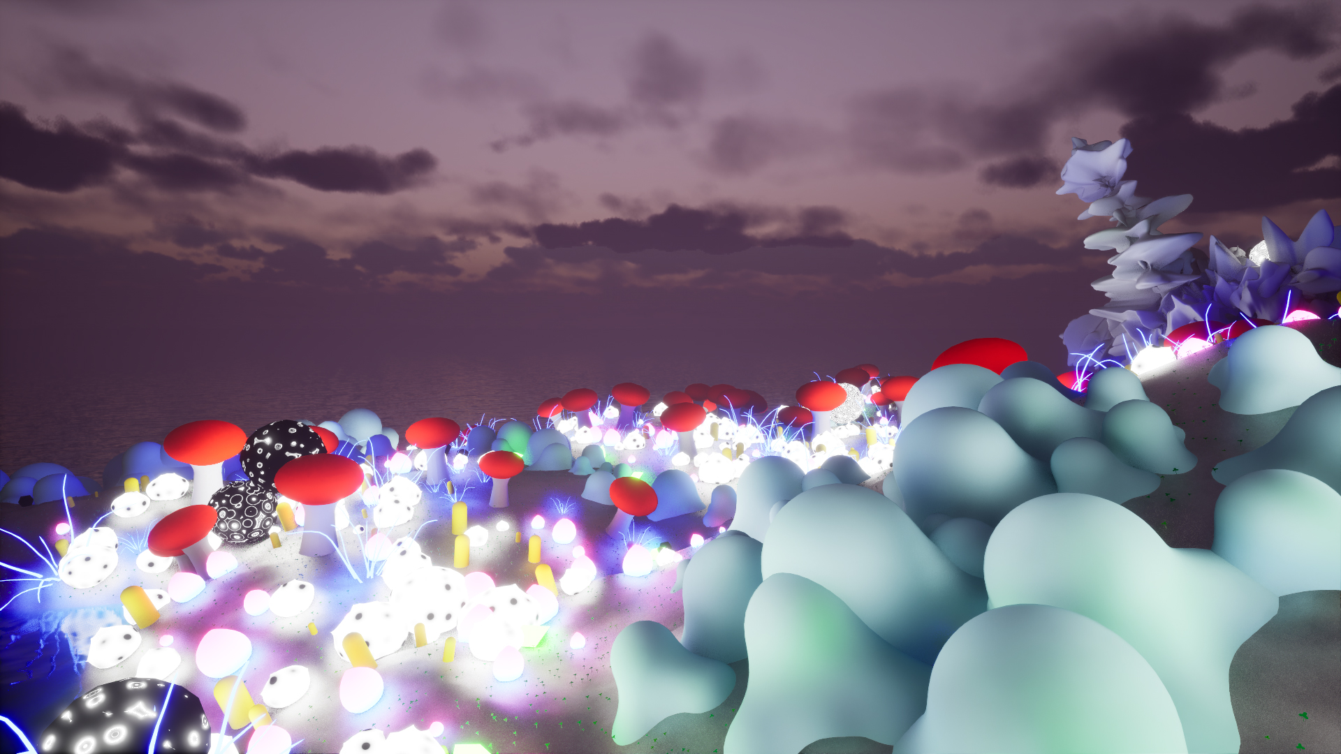 I started making a new world inside an application, like a walking simulator game. There is no clear concept or blueprint for the project, but I will make places I want to visit, landscapes I want to see, and a world I want to explore. So far there is only one small island. Visitors can walk around in it.